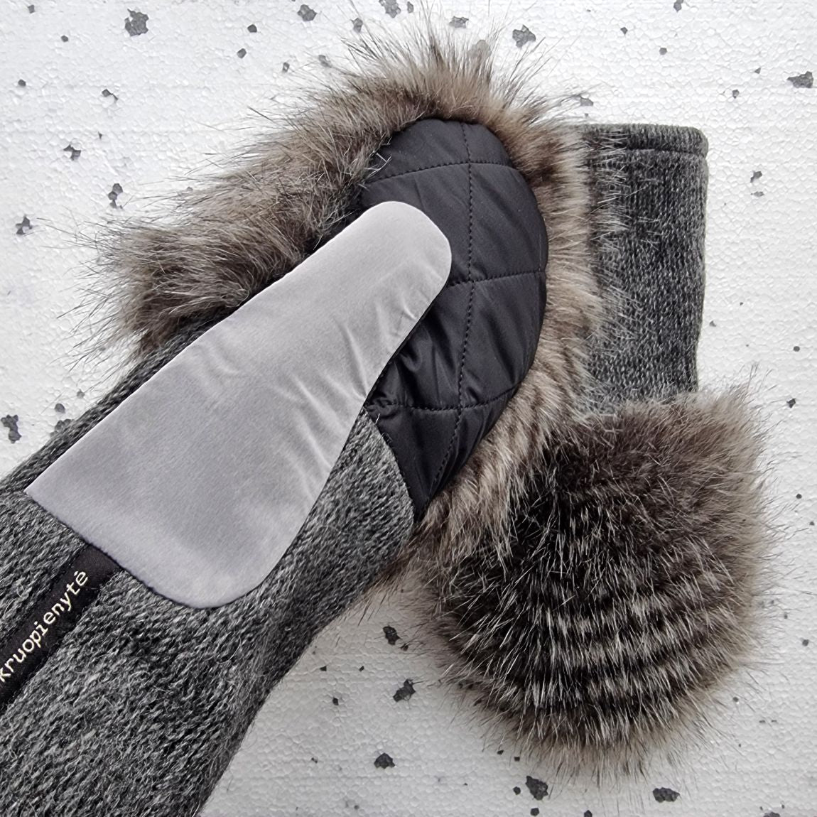 Mittens with faux fur GREY